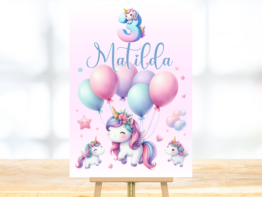 Willkommensschild zum 1. Geburtstag Kindergeburtstag Personalisiertes Deutsch Einhorn