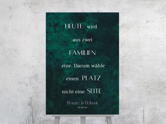 Heute wird aus zwei Familien eine Schild für Hochzeit Leinwand, Poster. Glamour , grün MELISSA