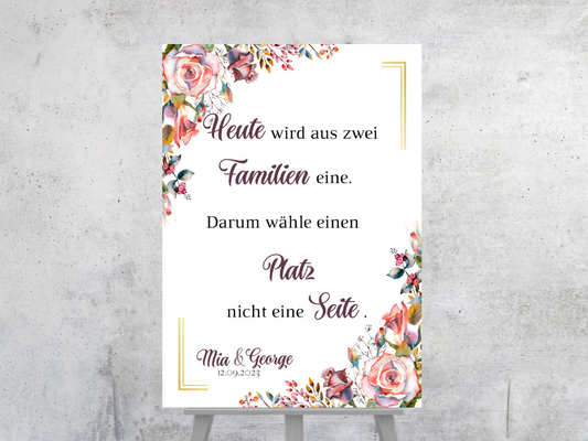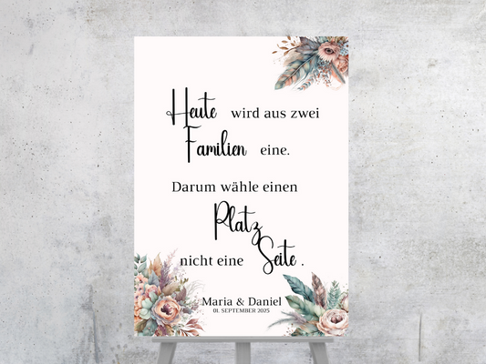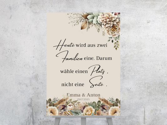 Heute wird aus zwei Familien eine Schild für Hochzeit Leinwand, Poster. Boho , Beige , Blumen JULIA