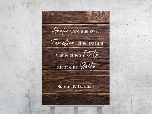 Heute wird aus zwei Familien eine Schild für Hochzeit Leinwand, Poster. Boho , Holzeffekt , Vintage LEONIE