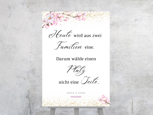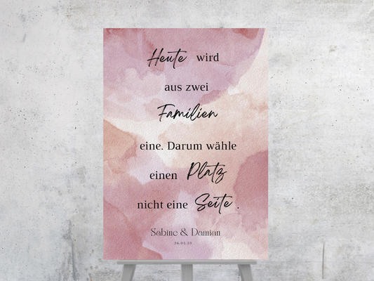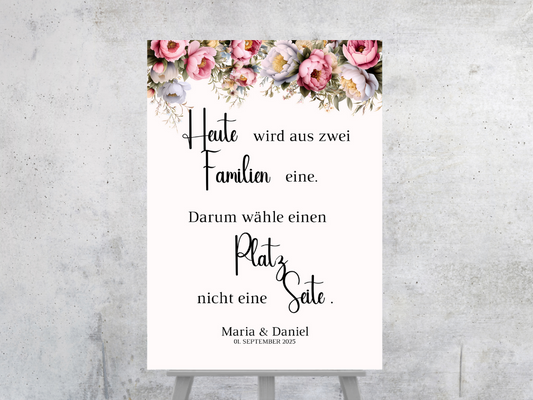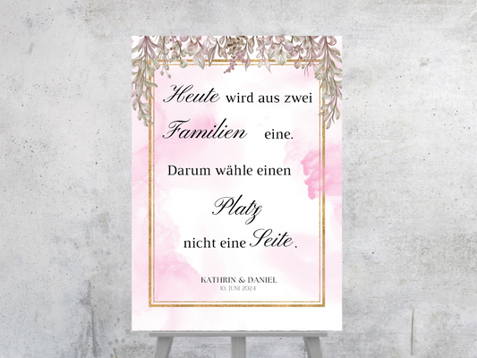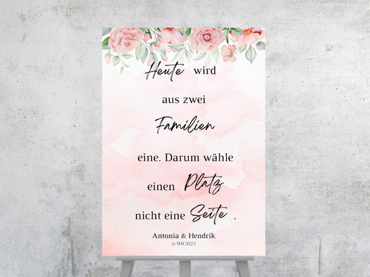 Heute wird aus zwei Familien eine Schild für Hochzeit Leinwand, Poster. Boho , Rosa Blumen SOPHIE