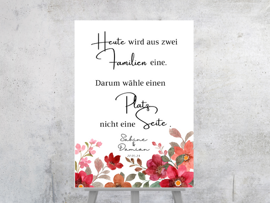 Heute wird aus zwei Familien eine Schild für Hochzeit Leinwand, Poster. Bunte Blumen , Rot , Vintage NATALIE