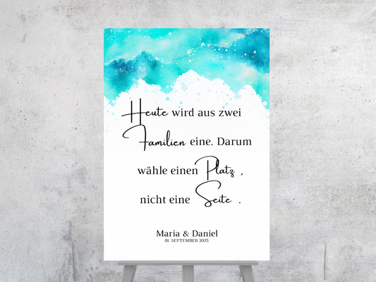 Heute wird aus zwei Familien eine Schild für Hochzeit Leinwand, Poster. Strand Hochzeit , Marine , Blaue Blumen MILA