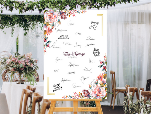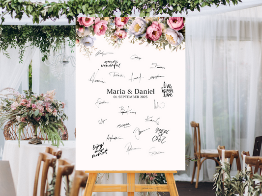 Gästebuch Alternativen für Hochzeit Leinwand, Poster . Boho , Rosa Blumen MARTA