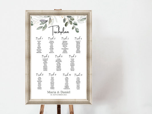 Personalisierter Hochzeits Sitzplan - Leinwand , Poster - Eukalyptus Vintage ANNA