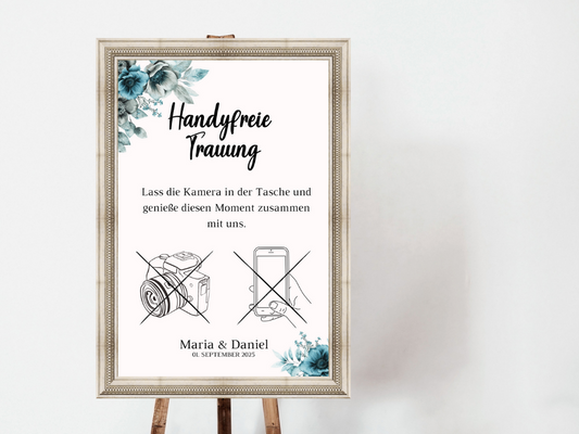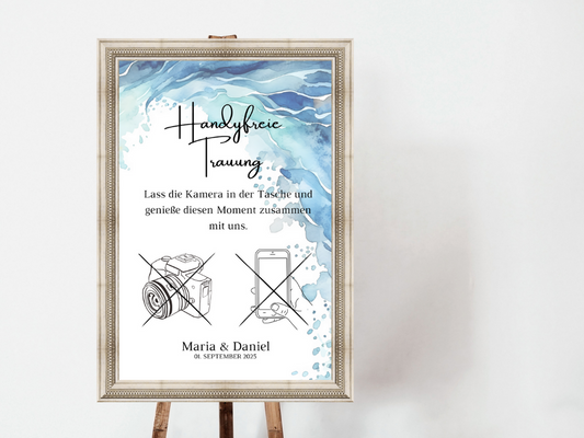 Handyfreie Trauung für Hochzeit Leinwand, Poster . Strand Hochzeit , Marine , Blaue Blumen MILA