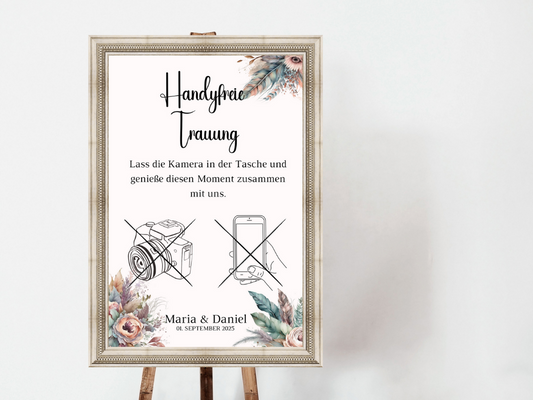 Handyfreie Trauung für Hochzeit Leinwand, Poster . Trockenblumen , Boho Strand Hochzeit DIANA
