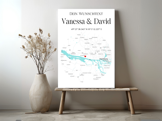 Personalisierte Stadtkarte als Leinwand oder Poster