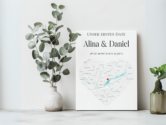 Personalisierte Herz Stadtkarte als Leinwand oder Poster