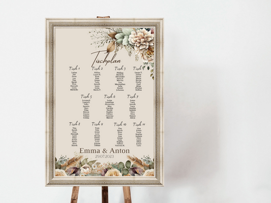 Personalisierter Hochzeits Sitzplan - Leinwand , Poster - Boho , Beige , Blumen DIANA