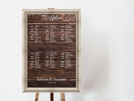Personalisierter Hochzeits Sitzplan - Leinwand , Poster - Boho , Holzeffekt , Vintage LEONIE