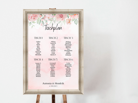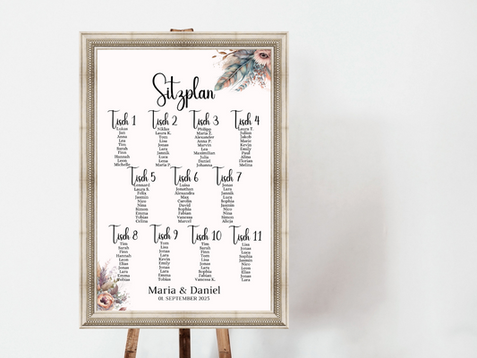 Personalisierter Hochzeits Sitzplan - Leinwand , Poster - Boho , Rosa Blumen SOPHIE