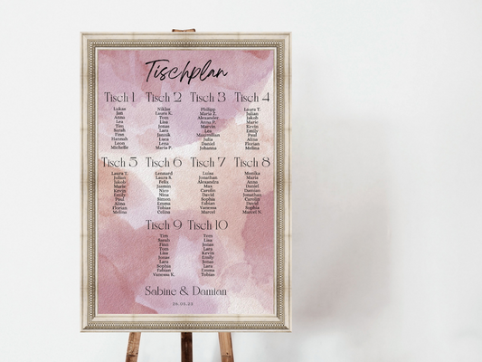 Personalisierter Hochzeits Sitzplan - Leinwand , Poster - Glamour , rosa EMILY
