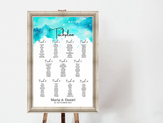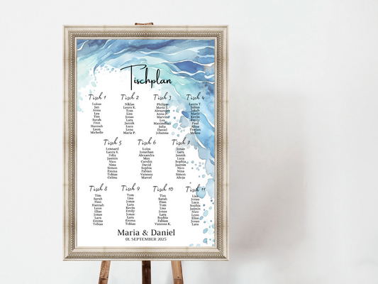 Personalisierter Hochzeits Sitzplan - Leinwand , Poster - Strand Hochzeit , Meer Motiv ARIA
