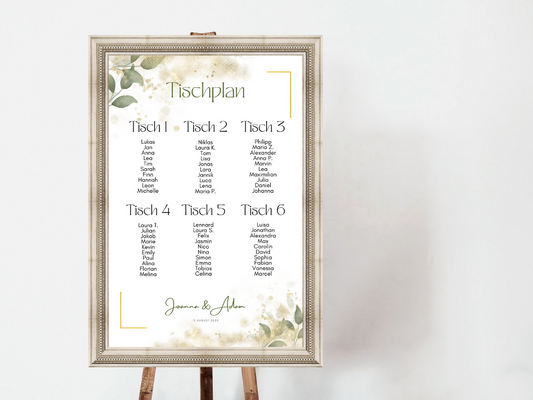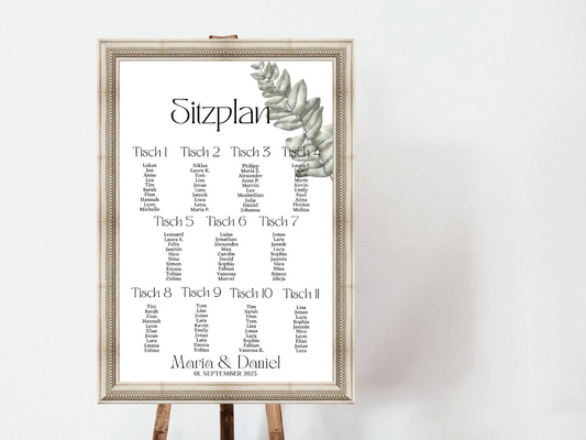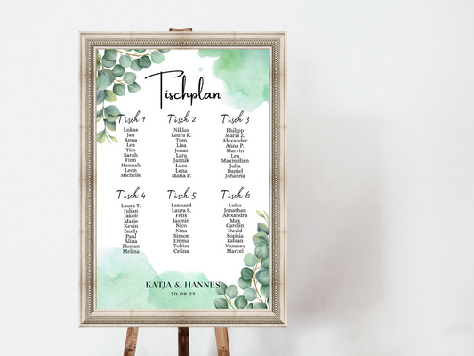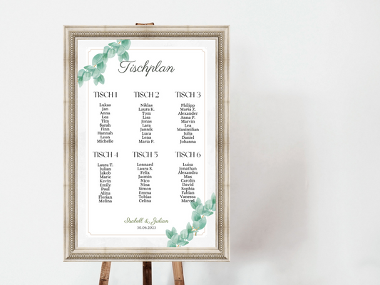 Personalisierter Hochzeits Sitzplan - Leinwand , Poster - Eukalyptus Vintage NELE