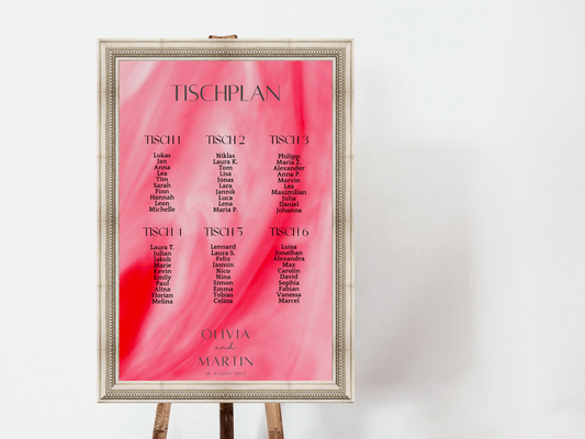 Personalisierter Hochzeits Sitzplan - Leinwand , Poster - Glamour , Rot LENA