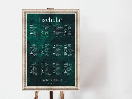 Personalisierter Hochzeits Sitzplan - Leinwand , Poster - Glamour , grün MELISSA