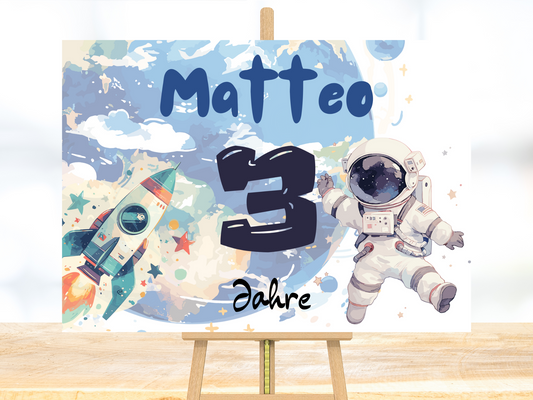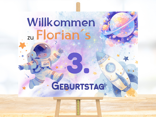 Willkommensschild zum 1. Geburtstag Kindergeburtstag Personalisiertes Kosmos Deutsch