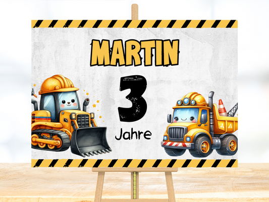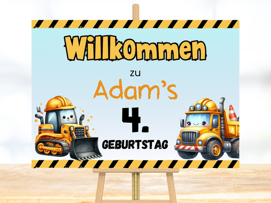 Willkommensschild zum 1. Geburtstag Kindergeburtstag Personalisiertes Bagger Baustelle Deutsch