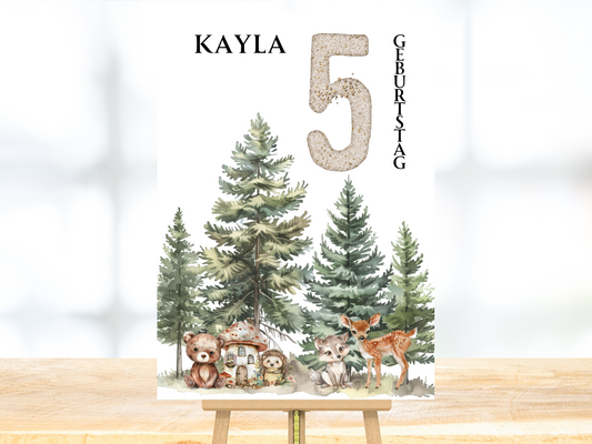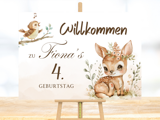 Willkommensschild zum 1. Geburtstag Kindergeburtstag Personalisiertes Waldtiere