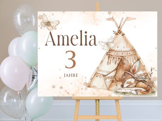 Willkommensschild zum 1. Geburtstag Kindergeburtstag Personalisiertes Deutsch boho