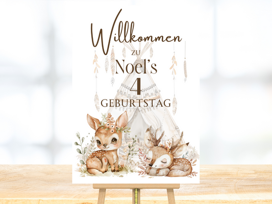 Willkommensschild zum 1. Geburtstag Kindergeburtstag Personalisiertes Boho Waldtiere