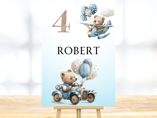 Willkommensschild zum 1. Geburtstag Kindergeburtstag Personalisiertes Teddybär Auto