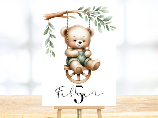 Willkommensschild zum 1. Geburtstag Kindergeburtstag Personalisiertes Teddybär
